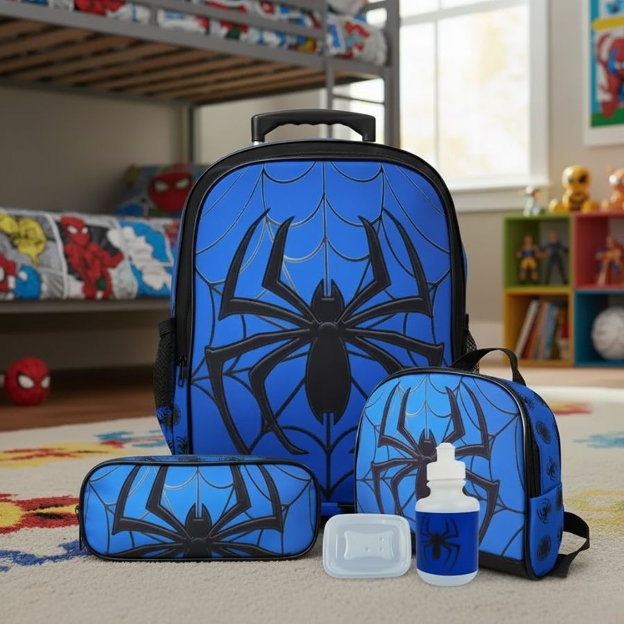 Kit Mochila Com Rodinhas Spider Tamanho M - Vou Leve